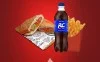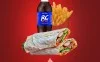 Лаваш, куриная грудка, помидор, огурцы, сыр «Чеддер», салат лист, rc cola 0.3мл,Фри