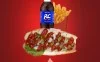 Лаваш, чесночный соус, говяжье мясо, фри, сосиска индейка, томатный соус, огурцы , rc cola 0.3мл,Фри