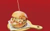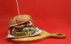 Котлета говяжий, вкусная сыр, салат. лист, помидоры, марин. огурцы, фирменный соус, кетчуп