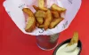 Соус «Моцарелла», соус из помидор, картошка фри, куриная грудка, помидоры, корнишоны, красный лук